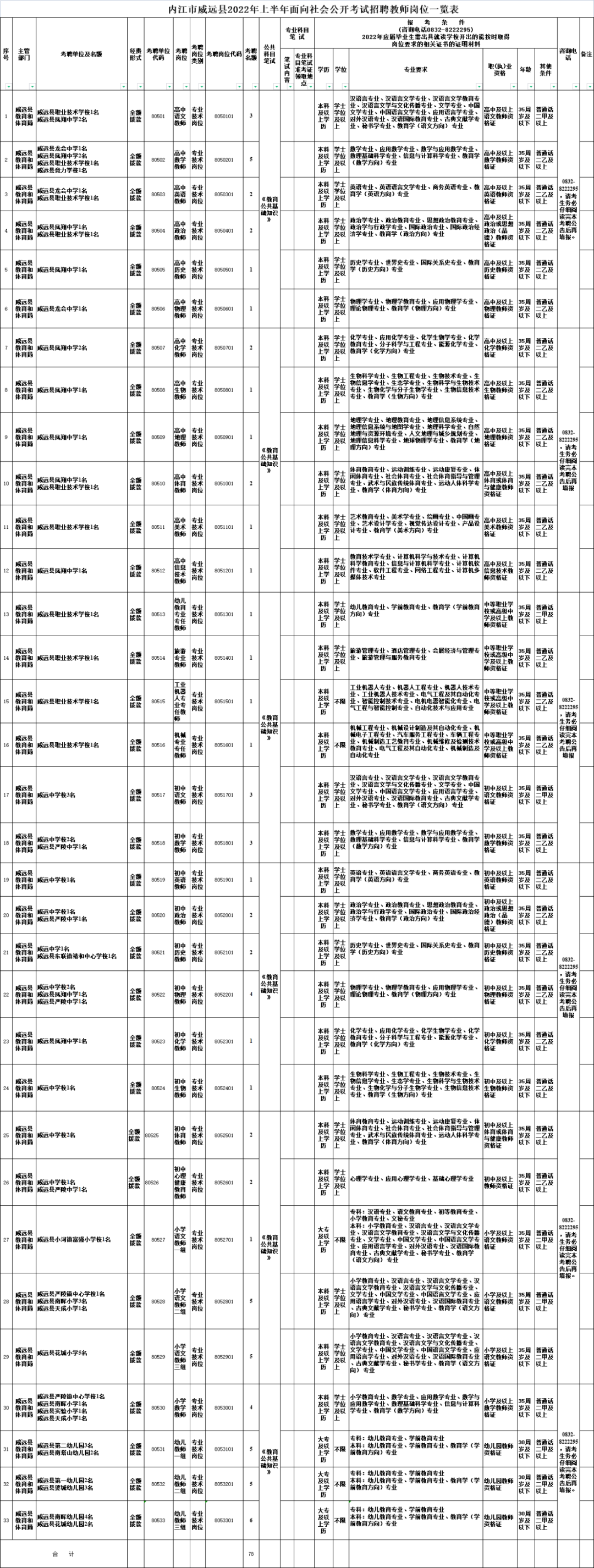 根据《事业单位人事管理条例》、《四川省事业单位工作人员招聘工作试行办法》(川人发〔2006〕9号)、《安博首页_安博(中国)进一步规范事业单位公开招聘工作的通知》(川人社发〔2011〕36号)、《事业单位公开招聘违纪违规行为处理规定》(人力资源和社会保障部令第35号) 及《事业单位人事管理回避规定》(人社部规〔2019〕1号)等法规文件规定,按照“公开、平等、竞争、择优”原则,威远县2022年上半年拟面向社会公开考试招聘(以下简称“考聘”)教师78名。现将有关事项公告如下: