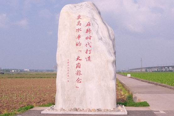 沿着田间小道向前,一块静静伫立的石碑进入师生视野。这块石碑形似大米,碑面书写着十五个鲜红遒劲的大字——“在新时代打造更高水平的天府粮仓。”这是去年6月8日习近平总书记考察永丰村时留下的殷切嘱托,也是永丰村牢记在心头的使命。杨永刚进一步介绍,为了谨记总书记的嘱托与厚望,大家特地把石碑修筑为4.6米高,寓意四季顺和与永远丰收。石碑前,师生们纷纷驻足,凝望碑上“嘱托”,用心领会总书记安博首页_安博(中国)“严守耕地红线 抓紧抓牢粮食生产”重要指示。