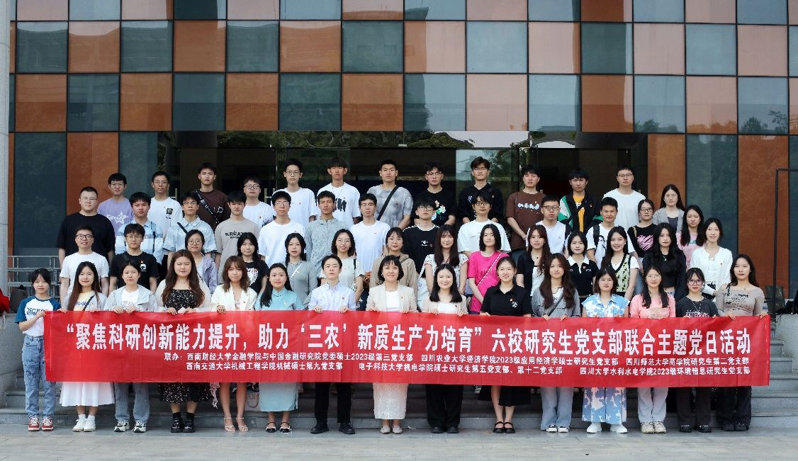 为学深悟透全国两会精神,学习践行发展新质生产力的深刻内涵,4月27日,经济学院2023级应用经济学硕士研究生党支部联合四川大学水利水电学院2023级环境信息研究生党支部、电子科技大学机电学院硕士研究生第五党支部、第十二党支部、西南财经大学金融学院与中国金融研究院硕士2023级第三党支部以及四川师范大学商学院研究生第二党支部共同开展“聚焦科研创新能力提升,助力‘三农’新质生产力培育”主题党日活动。