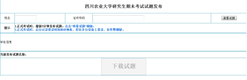 2. 6月25日18:55可通过录入姓名和身份证号下载试卷,下载地址:http://yzb.sicau.edu.cn/zyml/py_test.aspx,下载页面如图: