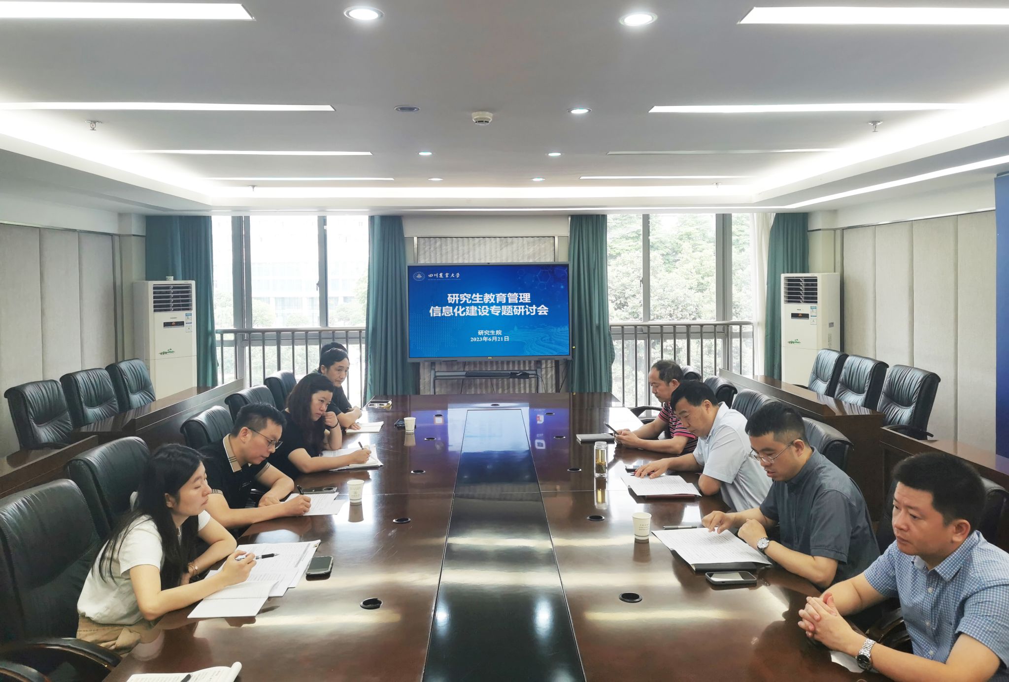 6月21日上午,研究生院召开信息化建设专题研讨会,全体院领导及科级干部参加会议,会议邀请学校信息与教育技术中心主任刘涛、二科科长赖翔和教务处曾昌伟老师参加。会议由研究生院院长李廷轩主持。