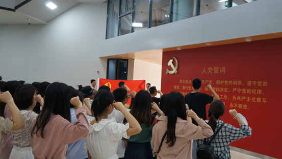 在参观完展览后,为进一步坚定理想信念,全体研究生党员一起重温了入党誓词。同学们纷纷表示此次实践感触颇深,收获颇多。2020级研究生预备党员刘珺瑶说,“南湖之上开红船,红岩江姐唱红梅等形象深入地向我们展示了党的光辉历程和伟大成就,我感到备受鼓舞。”2019级研究生党员杨荣淑谈到,这次实践让我从一件件历史物品,一摞摞历史文件,一张张历史照片中近距离感受到党带领全国各族人民从“站起来”到“富起来”再到“强起来”的历史性飞跃,从近代的积贫积弱到现在的繁荣,靠的是一代又一代人的顽强拼搏和实干奋进,表示一定会在未来的日子中认真践行入党誓词,不断提升自身基本素质,打牢学科基础知识,为祖国建设贡献自己的力量。